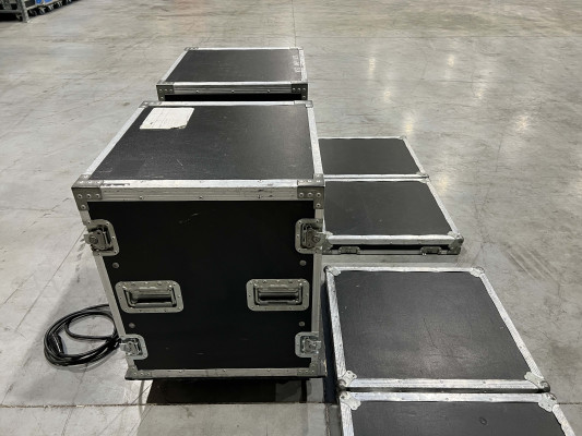 1x flightcase on wheels (2 wheels have brakes)