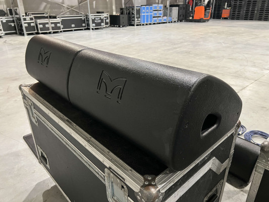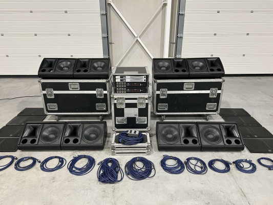 - The middle wheeled flight case, on which the amplifier rack is placed, is not included.