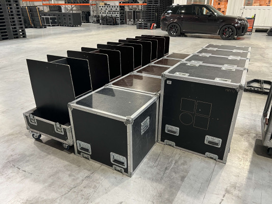 - 05x flightcase on wheels for 2x Y Flying frame (the brakes of some wheels are broken, one flightcase is a bit damaged)