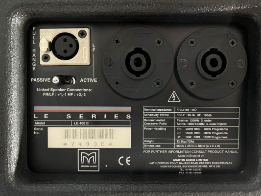 - 1x Martin Audio LE400B 15"/1" monitor