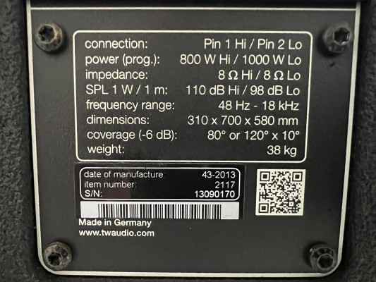 - 12x TWAUDiO VERA36 2x10"/2x8"/2x1,4" line array